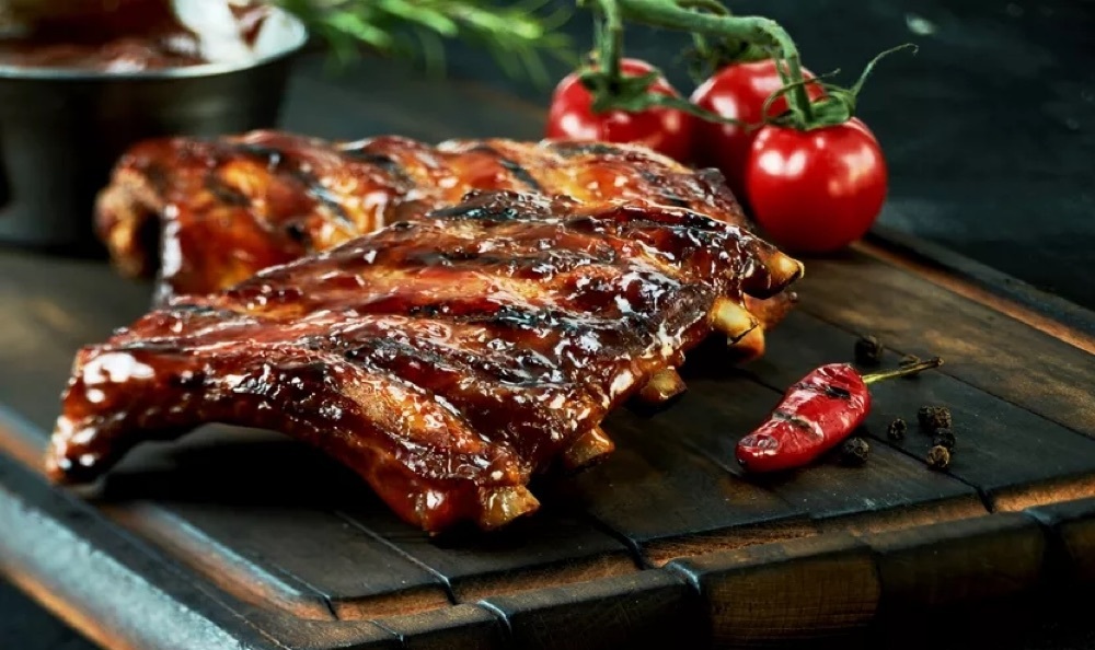 Шашлык из свиных рёбрышек 350 гр.,Маринованный лук.
